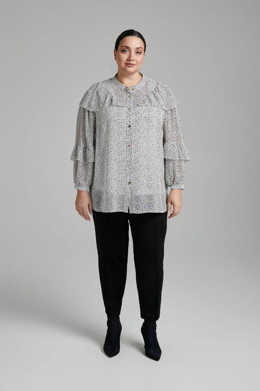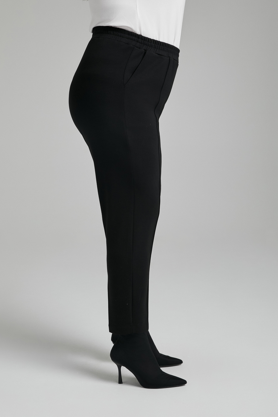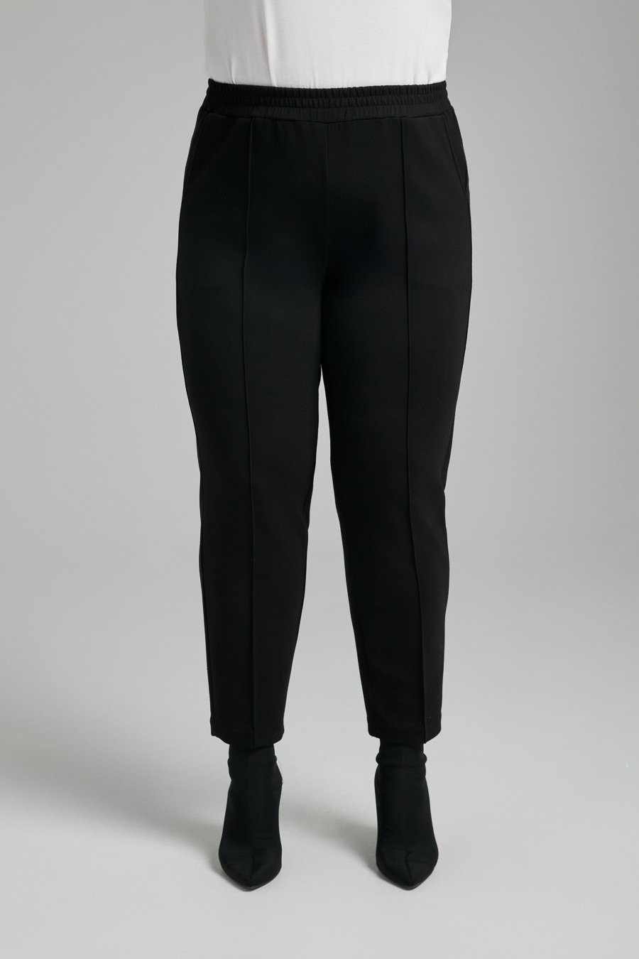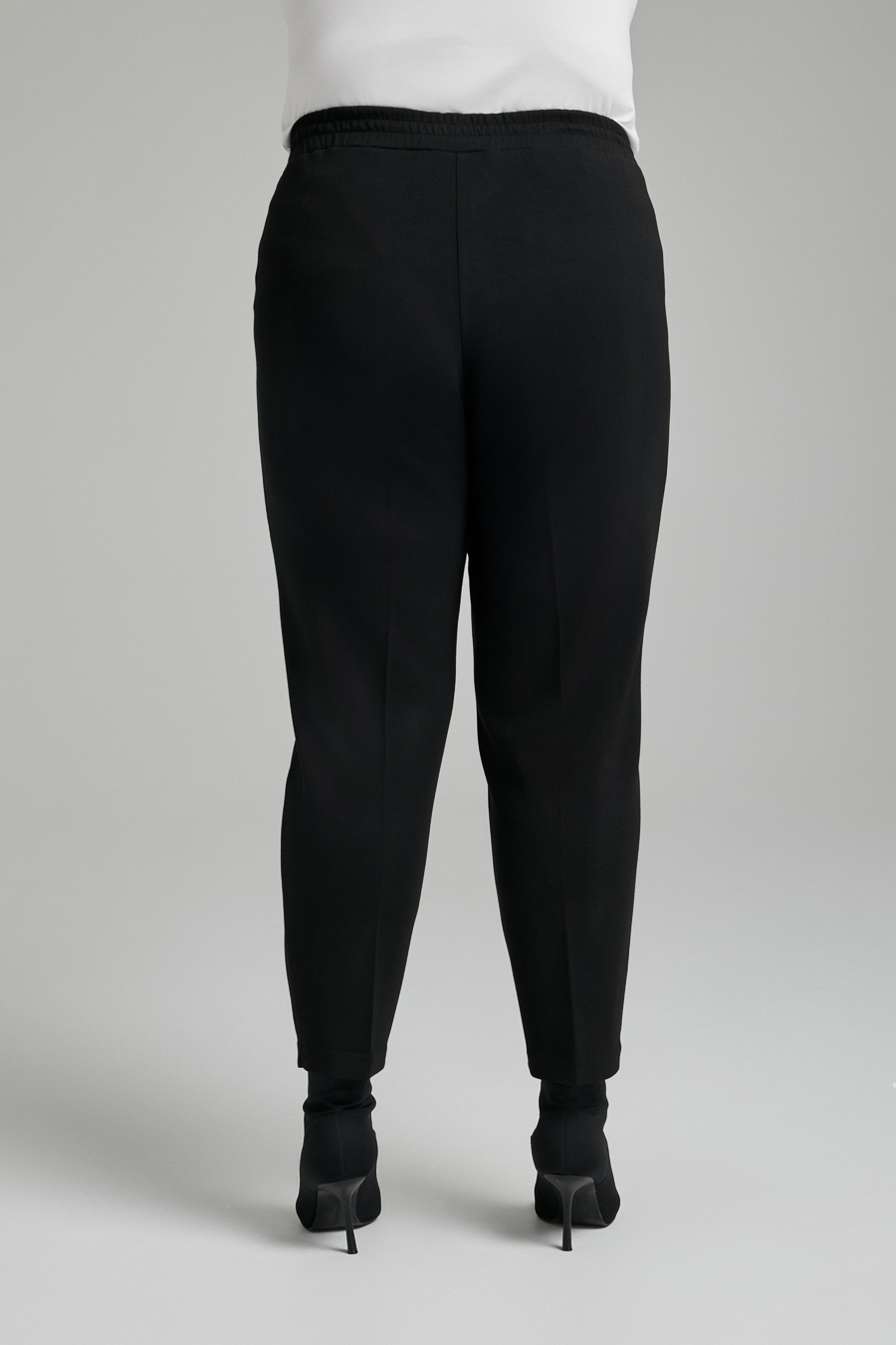 Свободные брюки из трикотажного джерси с карманами и отстроченными стрелками чуть зауженные к низу. Длина изделия 104см