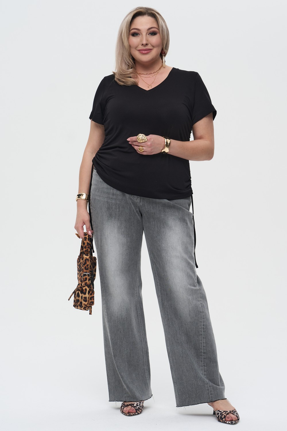 • Силуэт: Свободный крой Wide Leg с широкими штанинами от бедра, создающий актуальный объемный силуэт.