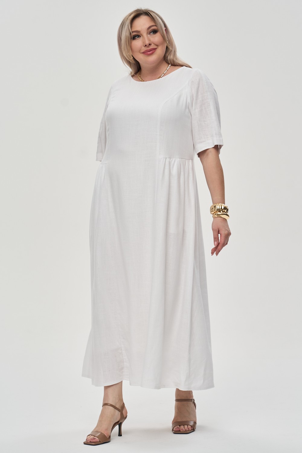 Платье является самостоятельным акцентом в гардеробе и прекрасно дополняется лаконичными аксессуарами в светлых тонах или украшениями под золото.