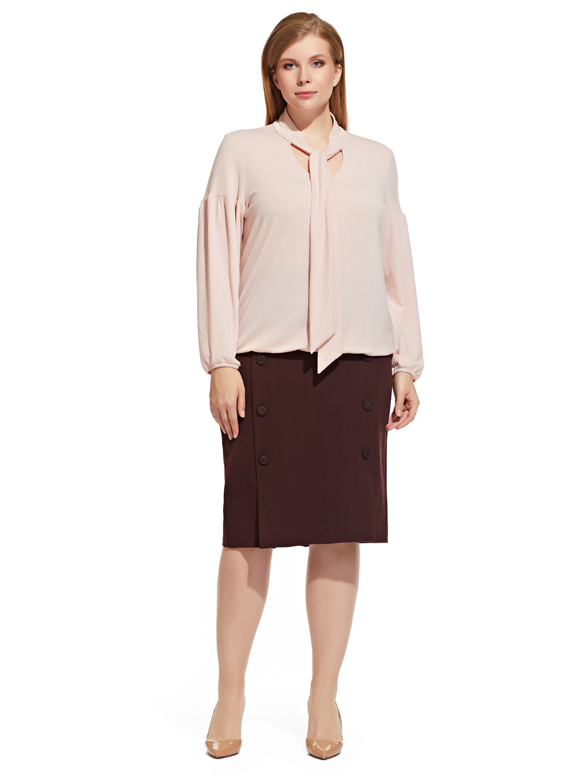 Юбка прямого силуэта из поливискозы с эластаном. Особенности модели - пояс частично на резинке, декоративные пуговицы, молния. Для делового и повседневного стиля.