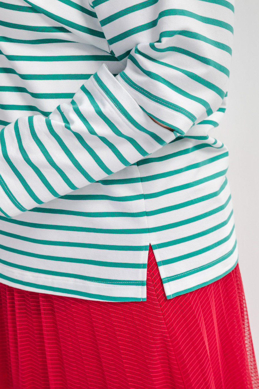 Лонгслив прямого свободного силуэта из хлопка эластаном. Идеально сочетается с брюками из подобной ткани или летящими юбками миди.
