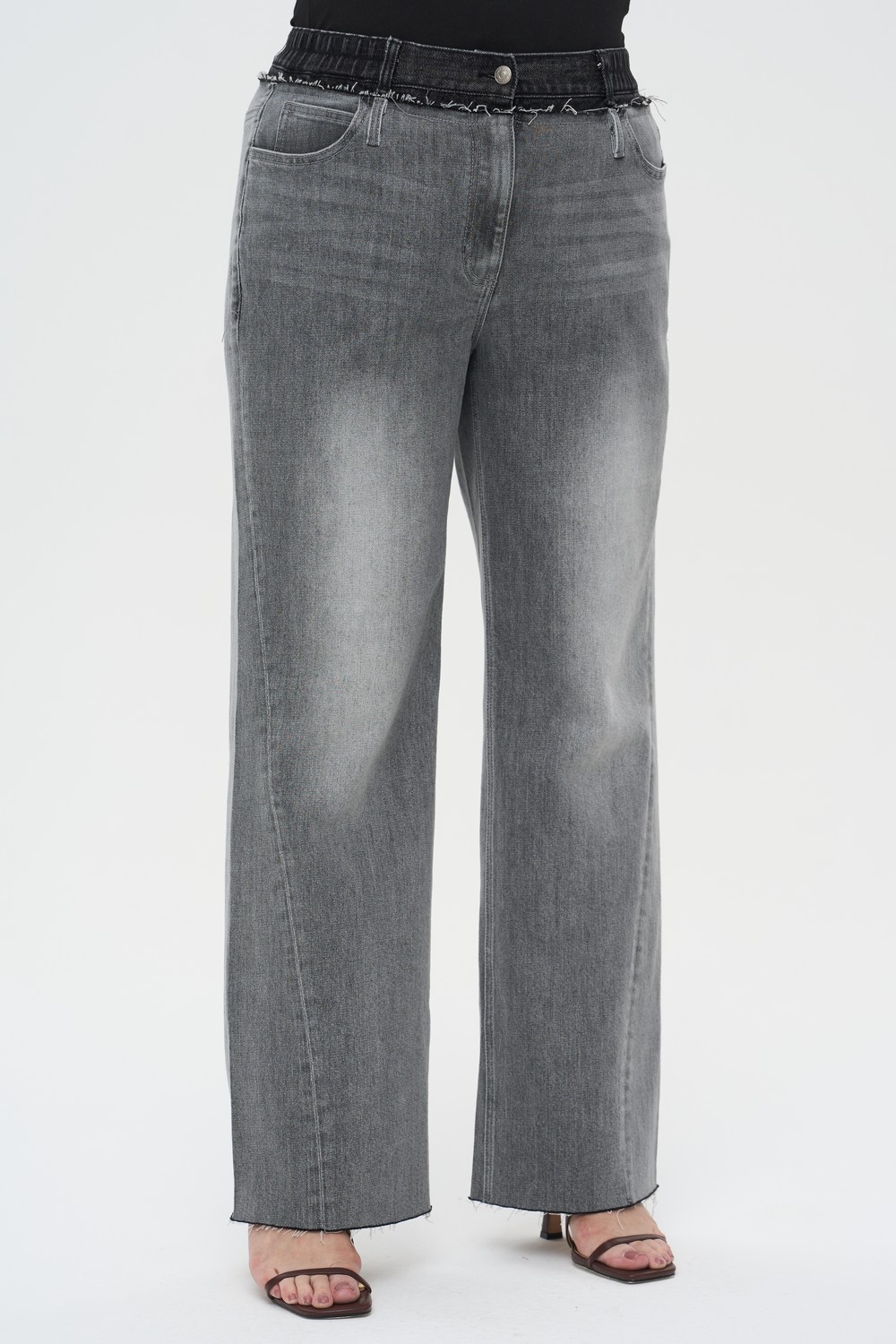 • Нижний край: Необработанный срез с легкой бахромой придает модели непринужденный вид.