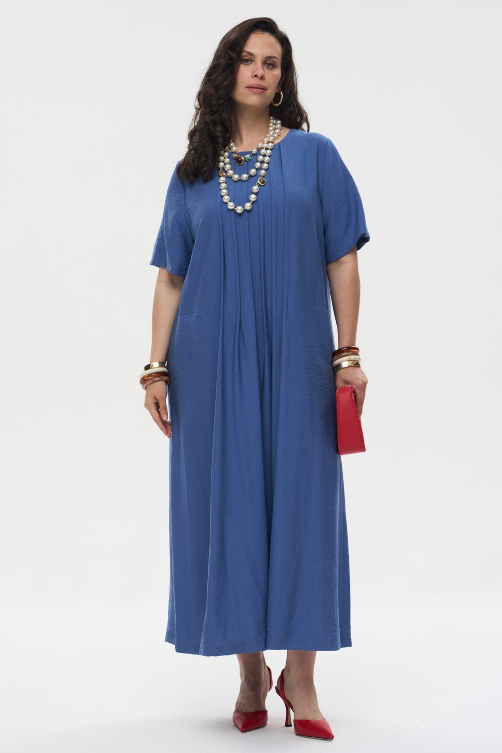 • Детали: Глубокие встречные складки по центру полочки создают красивый вертикальный акцент и дополнительный объем, придавая образу архитектурность.