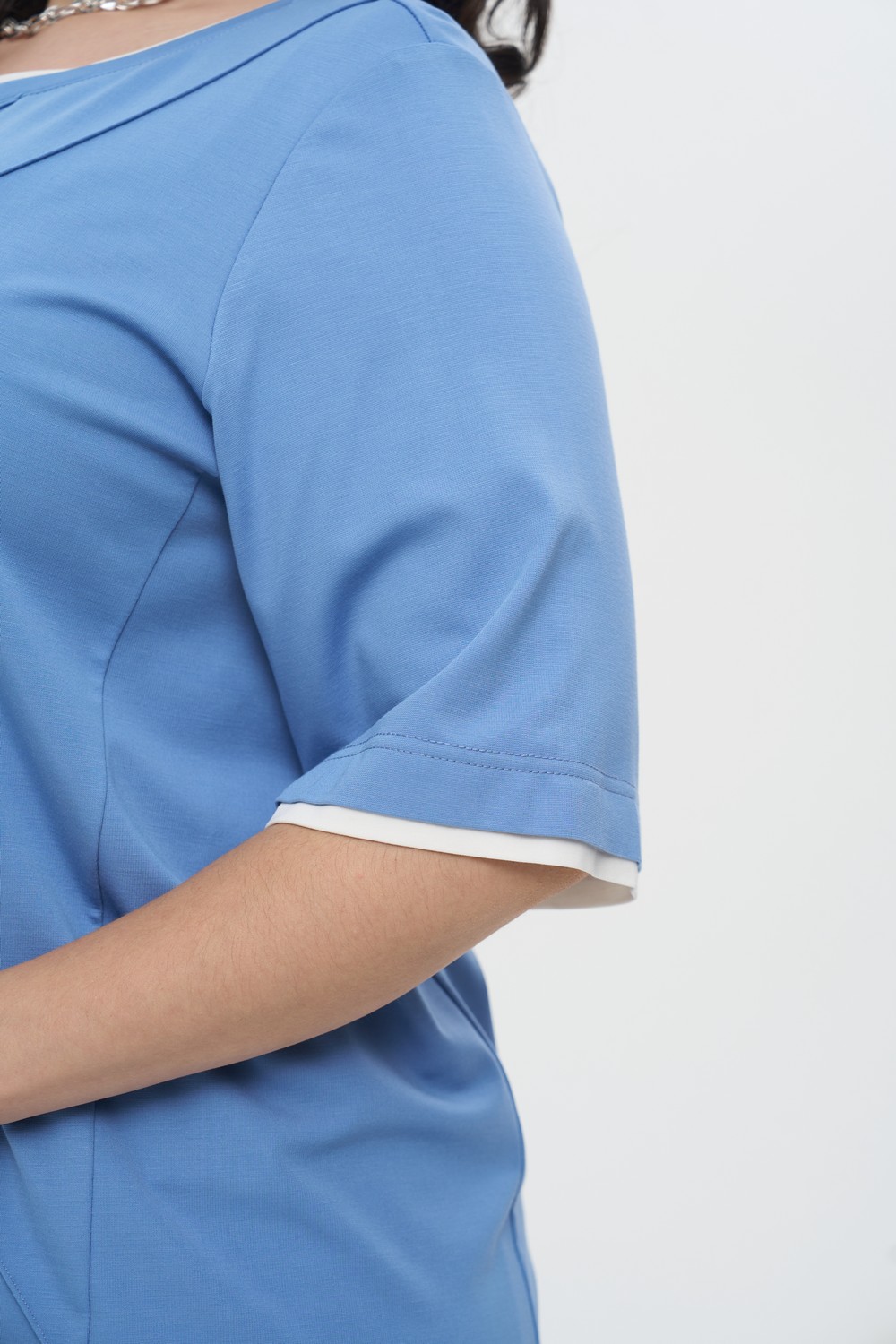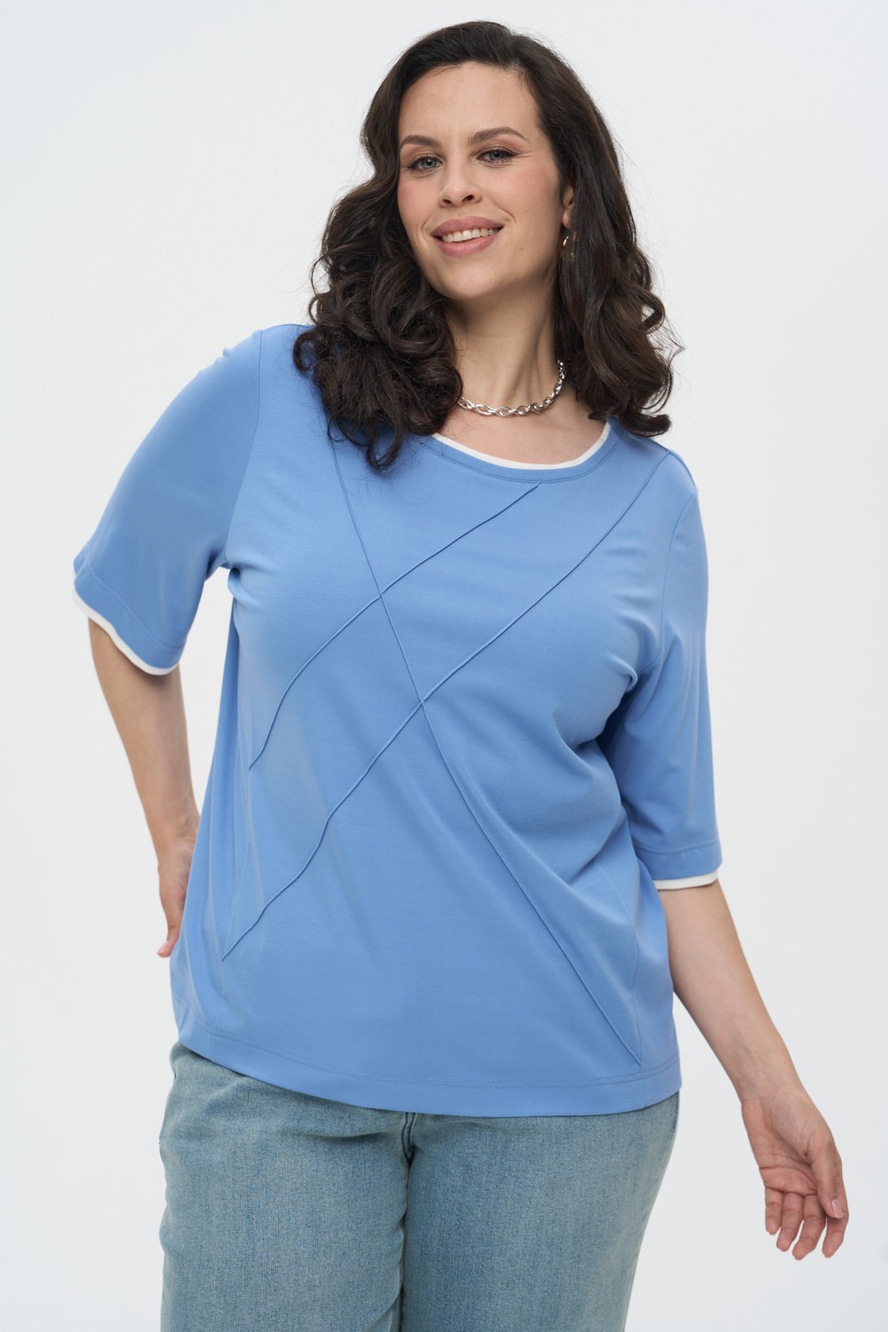• Горловина: Широкий округлый вырез с лаконичной обработкой.