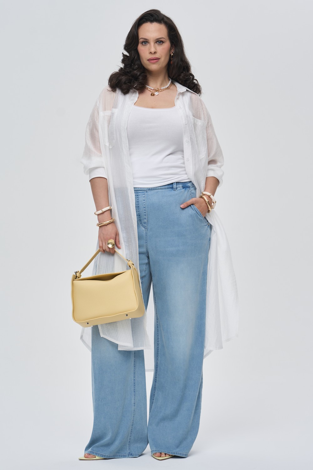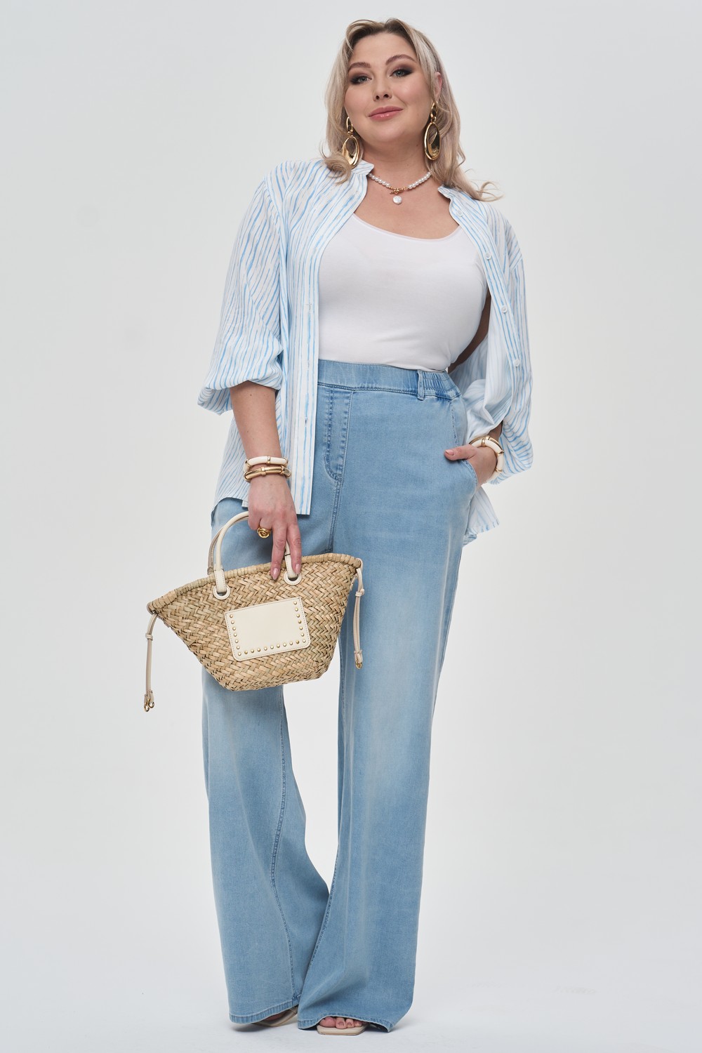 • Силуэт: Свободный крой Wide Leg с широкими от бедра штанинами, который создает актуальный летящий силуэт.